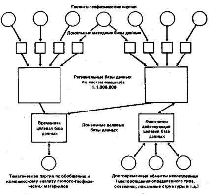2) разработка систем передачи и обмена геоданными между источниками (ПВК) и потребителями (АРМ и ВЦ экспедиций, ПГО и региональных центров отраслевого и межотраслевого назначения). В рамках этой проблемы должна быть решена задача стандартизации обменного формата геоданных. В качестве возможного варианта такого обменного формата геоданных можно использовать структуру формата, разработанного американской ассоциацией геологов-нефтяников 1987 г. для геологических данных и данных по геологии нефти.