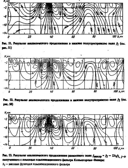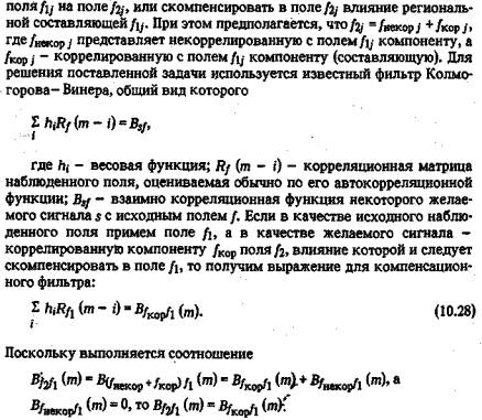 Естественно, что компенсационный фильтр (10.29) - (10.30) с успехом может использоваться для обработки данных, полученных разномасштабными съемками, например f1 масштаба 1 : 200 000, а f2 - масштаба 1:50 000 и т. д.