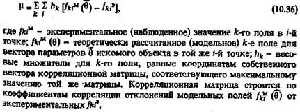 При физико-геологическом моделировании, предусматривающем количественные оценки параметров модели, в качестве параметра оптимизации используется обобщенное расстояние (см. раздел 10.3), в методах подбора - значение среднеквадратической ошибки отклонения модельных (теоретически рассчитанных) и экспериментальных данных, а также величина, минимизирующая многопараметрический функционал (при наличии функциональной зависимости).
