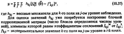 При наличии комплексных геофизических исследований, проведенных на разных уровнях (высотах) наблюдения, критерий адекватности ФГМ реальной среде с учетом соотношения (10.36) выражается обобщенным расстоянием