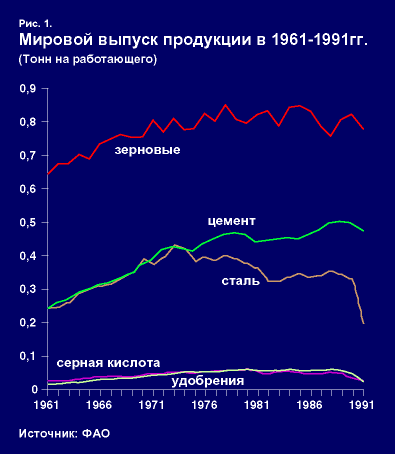 стоимость рыночной корзины, производимой на душу населения, уменьшается. Это