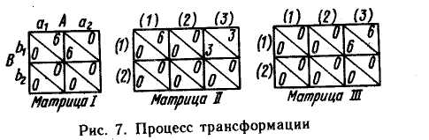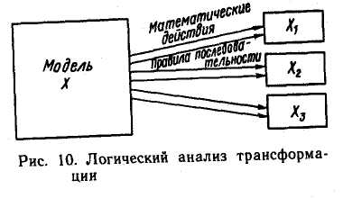Связь такого логического анализа с моделью источников эффективной матрицы (рис. 6) очевидна: X соответствует заданной матрице, а модель X1 — эффективной. Математические действия и правила последовательности соответствуют двум важным аспектам процесса трансформации — трансформациям результата и трансформациям последовательности.