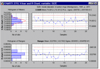 2М гистограммы - Висячие столбцы. Гистограмма висячих столбцов является "наглядным критерием проверки на нормальность распределения", который помогает определить области распределения, где возникают расхождения между наблюдаемыми и ожидаемыми нормальными частотами. В то время как стандартным способом представления подогнанного к наблюдаемому распределению нормального распределения является наложение на гистограмму наиболее подходящей нормальной кривой, гистограмма висячих столбцов предлагает противоположный способ: столбцы, представляющие наблюдаемые частоты для последовательных диапазонов значений, "подвешиваются" к наиболее подходящей нормальной кривой.