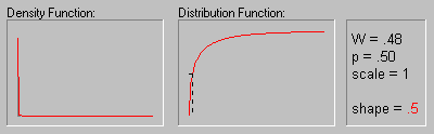 Вейбулла при увеличении параметра формы (.5, 1, 2, 3,