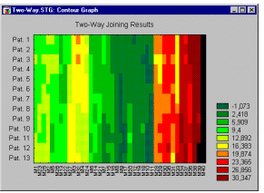 Так, возвращаясь к предыдущему примеру, можно предположить, что медицинскому исследователю требуется выделить кластеры пациентов, сходных по отношению к определенным кластерам характеристик физического состояния. Трудность с интерпретацией полученных результатов возникает вследствие того, что сходства между различными кластерами могут происходить из (или быть причиной) некоторого различия подмножеств переменных. Поэтому получающиеся кластеры являются по своей природе неоднородными. Возможно это кажется вначале немного туманным; в самом деле, в сравнении с другими описанными методами кластерного анализа (см. Объединение (древовидная кластеризация) и Метод K средних), двувходовое объединение является, вероятно, наименее часто используемым методом. Однако некоторые исследователи полагают, что он предлагает мощное средство разведочного анализа данных (за более подробной информацией вы можете обратиться к описанию этого метода у Хартигана (Hartigan, 1975)).