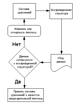 Для проверки имеет ли ковариационная матрица заданную структуру статистики используют несколько процедур. Процесс структурного моделирования состоит из следующих этапов: